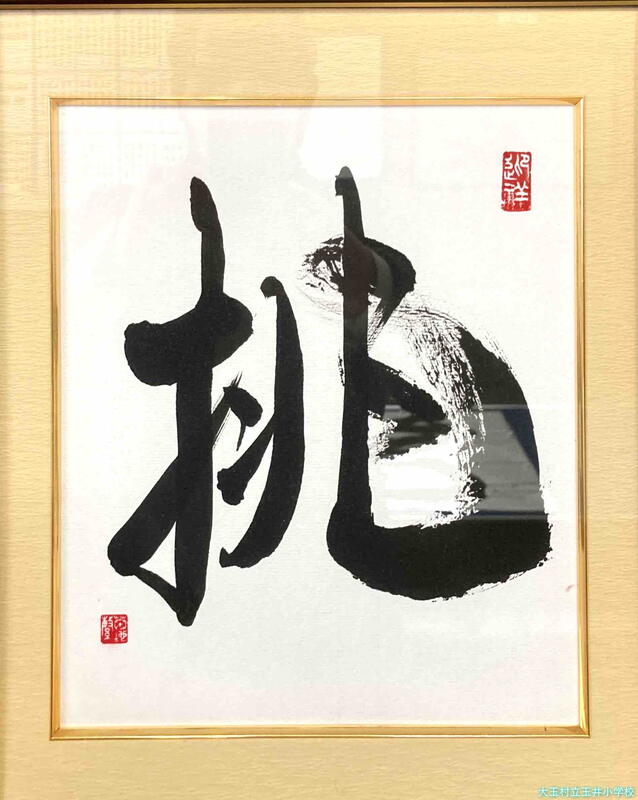 今年も、地区内の書道家 菊地繁子先生にお願いし、体育館のステージ上で全校生が見守る中書いていただきました。各教室には同様に色紙に書いていただいた「挑」の文字が掲げられました。