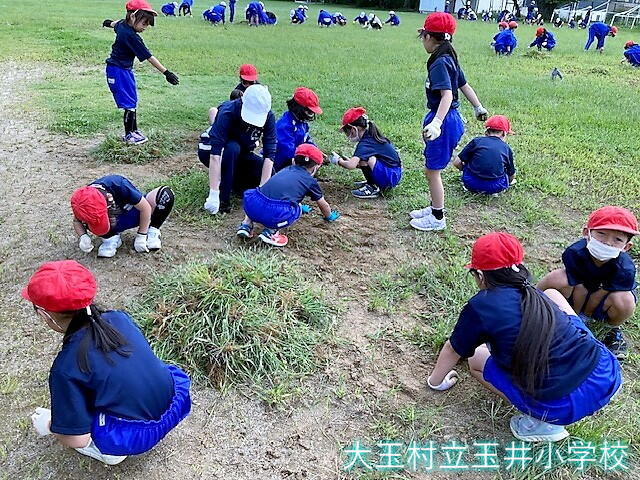 2023年9月25日 10時53分一学期に天候不順で実施できなかったクリーン作戦(校庭の除草)を行いました。1年生方6年生まで、力を合わせて校庭をきれいにしようと頑張りました。6年生は除草後の草の片付けも行ってくれました。頼りになる6年生です。