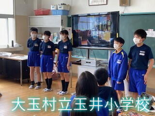 外国語科の時間に5年生の子どもたちが,大山小学校の子どもたちとリモートで交流を図りました。お互いに自分の学校の先生を英語で紹介したり,感想を発表したりしました。少しドキドキ、でもワクワクの時間のようでした。