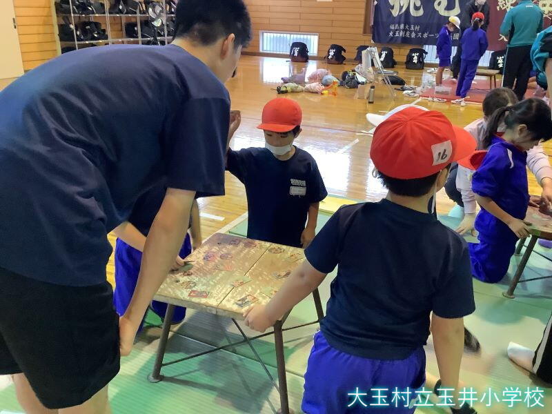 1・2年生は、中学3年生と大玉中学校の体育館で「昔遊び」を体験しました。地域の方も講師を務めて下さりました。子どもたちはとても楽しい時間を過ごすことが出来たようです。