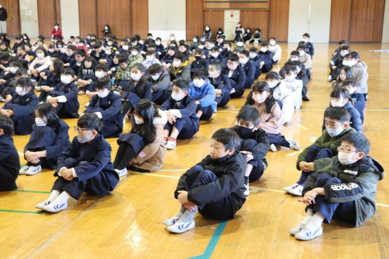 終業式では、校長から、2学期のひたむきな取組により心・頭・体が大きく成長したことや冬休みに取り組んで欲しいことなどを話しました。みんな真剣に耳を傾けてくれました。