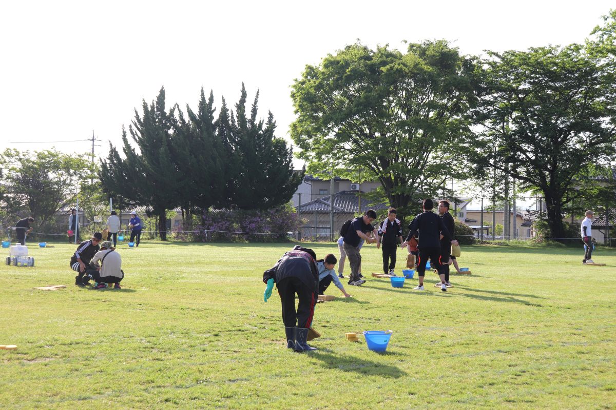 順延となった今年の運動会。早朝より保護者の方々に会場整備をしていただきました。