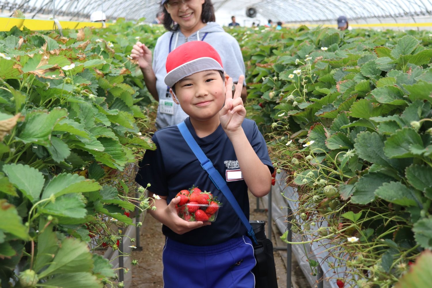今日は、大玉中学校のお兄さん・お姉さん、大山小学校のお友達と一緒にイチゴがり🍓をしました。いつもお世話になっている渡辺様のハウスに入ると甘~い香りが・・・・。子どもたちは他校のお友達と交流しながらイチゴがりを楽しみました。