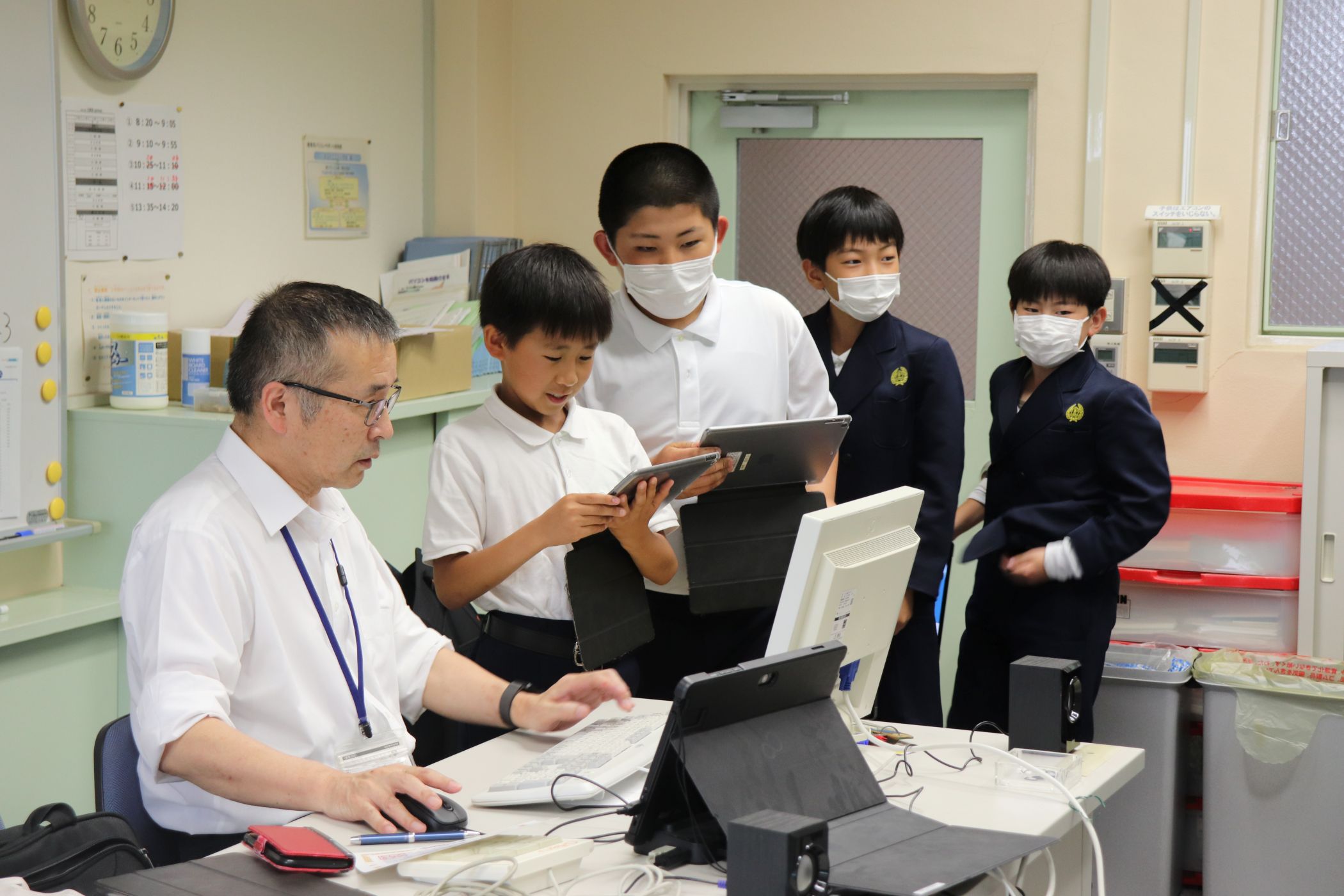 今日は4・5年生が、村のICT指導主事 馬場先生の指導のもと、PCのタッチタイピング等の基本操作を学びました。今後も、使い手の意識・姿勢(モラル等)についても併せて学習を進めていきます。